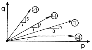아래 그림에서 토압계수 K=0.5일 때의 응력경로는 어느 것인가?