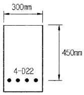 아래 그림과 같은 단철근 직사각형보가 공칭 휨강도(Mn)에 도달할 때 인장철근의 변형률은 얼마인가? (단, 철근 D22 4개의 단면적 1548mm2, fck=35MPa, fy=400MPa)(2022년 개정된 규정 적용됨)