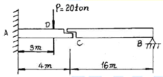 그림과 같은 게르버보에서 하중 P만에 의한 C점의 처짐은? (단, EI는 일정하고 EI=2.7×1011kgㆍcm2이다.)