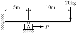 아래 그림에서 블록 A를 뽑아내는 데 필요한 힘 P는 최소 얼마 이상이어야 하는가? (단, 블록과 접촉면과의 마찰계수 μ=0.3)