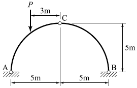 다음 그림과 같은 반원형 3힌지 아치에서 A점의 수평 반력은?