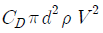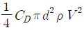 지름 d인 구(球)가 밀도 ρ의 유체 속을 유속 V로 침강할 때 구의 항력 D는? (단, 항력계수는 CD라 한다.)
