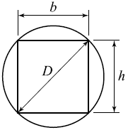 그림과 같이 지름 d인 원형단면에서 최대 단면계수를 갖는 직사각형 단면을 얻으려면 b/h는?