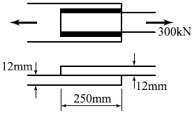 다음 필렛용접의 전단응력은 얼마인가?(2022년 개정된 규정 적용됨)