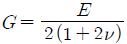 어떤 재료의 탄성계수를 E, 전단 탄성계수를 G라 할때 G와 E의 관계식으로 옳은 것은? (단, 이 재료의 프와송비는 ν이다.)