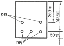 그림과 같은 인장철근을 갖는 보의 유효 깊이는? (단, D19철근의 공칭단면적은 287mm2이다.)