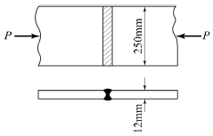 아래와 같은 맞대기 이음부에 발생하는 응력의 크기는? (단, P=360kN, 강판두께=12mm)