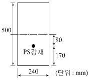 그림과 같은 직사각형 단면의 프리텐션 부재에 편심배치한 직선 PS강재를 760kN 긴장했을 때 탄성수축으로 인한 프리스트레스의 감소량은? (단, I=2.5×109mm4, n=6이다.)