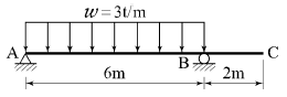 그림과 같은 내민보에서 자유단의 처짐은? (단, EI = 3.2 × 1011kg·cm2)
