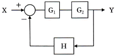 전달함수 G1, G2, H를 갖고 있는 요소를 그림과 같이 접속하였을 때 등가 전달함수 Y/X는?