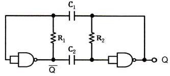 논리 게이트형 비안정 멀티바이브레이터의 발진주기는? (단, R1=R2=R, C1=C2=C 이다.)