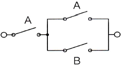 아래의 스위치 회로와 등가인 논리식은?