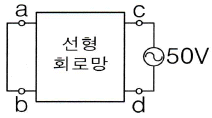 그림과 같은 회로에서 단자 a, b간에 100V의 전압을 가할 때 c, d에 흐르는 전류가 20A이었다. 반대로 같은 회로에 c, d간에 50V의 전압을 인가하면 a, b에 흐르는 전류는 몇 A인가?