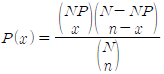 이항분포(binomial distribution)에서 매회 A가 일어나는 확률이 일정한 값 P일 때, n회의 독립시행 중 사상 A가 x회 일어날 확률 P(x)를 구하는 식은? (단, N은 로트의 크기, n은 시료의 크기, P는 로트의 모부적합품률이다.)