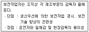 다음 내용은 설비보전조직에 대한 설명이다. 어떤 조직의 형태에 대한 설명인가?