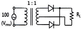 그림과 같은 정류 회로에서 입력 전압이 100V일 때 부하저항 R에 나타나는 평균치 전압은 몇 V인가?