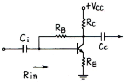 다음 증폭기 회로에서 저역 차단 주파수를 25Hz로 하기 위한 Ci의 용량은 약 몇 μF 인가? (단, 입력저항 Rin=200kΩ이다.)