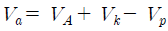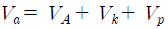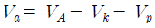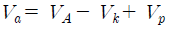직류 아크 용접시 두 전극 사이의 아크 전압 분포를 나타내는 식으로 올바른 것은? (단, Va : 아크 전압, VA : 양극 전압 강하, Vk : 음극 전압 강하, Vp : 아크 기둥 전압 강하)