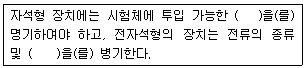 철강 재료의 자분탐상 시험방법 및 자분모양의 분류(KS D 0213)의 장치 기록 사항이다. ( ) 안에 올바른 것은 어느 것인가?