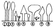 제벌 작업시 제거되어야 할 나무를 그림상에서 고른다면 어느 것이 되겠는가?