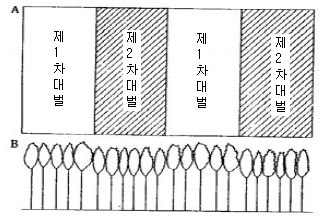 개벌작업 중 아래 그림과 같이 임분을 대의 계열로 나누어 하는 작업은?