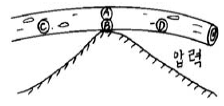 다음 그림과 같이 지형지물에 원목(原木)이 걸쳐 있을 때에 장력(張力)을 받는 부분은?