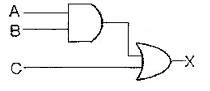 그림과 같은 논리회로에서 A=1,B=1, C=0 일 때 X로 출력되는 값은?