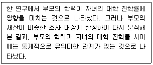 다음 사례에서 부모의 재산은 어떤 변수인가?