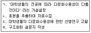 조사연구 과정의 일부분이다. 이를 올바르게 나열한 것은?