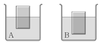 두 개의 컵에 서로 다른 유체 A, B가 담겨 있다. 각각의 컵에 동일한 재질로 만든 같은 크기의 균일한 물체를 넣었을 때 유체 A, B에 잠긴 정도가 달랐다. 유체 A에는 물체의 절반이 잠겼고, 유체 B에는 물체의 3/4 이 잠긴 상태에서 평형을 유지하고 있다. 유체 A, B의 밀도를 pA, pB라고 할 때 pA/pB 의 값은?