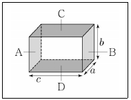 <보기>와 같이 직육면체 금속의 세 변의 길이의 비가 a:b:c=1:2:3 이다. 10V의 전원을 A와 B단자(양옆면)에 걸었을 때, 소비전력을 PAB라 하고, 같은 전원을 C와 D단자(위, 아래면)에 걸었을 때 소비전력을 PCD 라 할 때, PAB:PCD값은? (단, 두 단자는 금속 내에 균일한 전류를 형성하게 한다.)