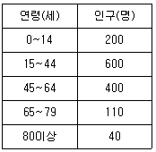 <보기>와 같은 인구구조를 가진 지역사회의 노년부양비는?