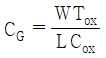 MOS 트랜지스터에서 게이트에서의 커패시턴스 관계식은? (단, L은 게이트의 길이, W는 게이트의 폭, Tox는 산화막의 두께, Cox는 SiO2의 유전율을 의미한다.)