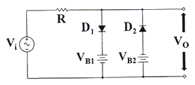다음 회로의 출력파형은 어느 것인가? (단, 다이오드는 이상적인 소자이다.)