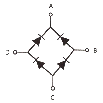 그림과 같은 브리지 정류회로는 어느 점에 교류입력을 연결하여야 하는가?
