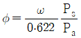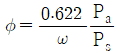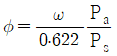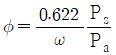 습공기의 상대습도(ø)와 절대습도(ω)와의 관계식으로 옳은 것은? (단, Pa는 건공기 분압, Ps는 습공기와 같은 오도의 포화수증기압력이다.)