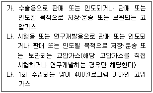고압가스안전관리법령에 따라 “냉매로 사용되는 가스 등 대통령령으로 정하는 종류의 고압가스”는 품질기준으로 고시하여야 하는데, 목적 또는 용량에 따라 고압가스에서 제외될 수 있다. 이러한 제외 기준에 해당되는 경우로 모두 고른 것은?
