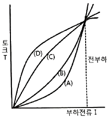 다음은 직류전동기의 토크특성을 나타내는 그래프이다. (A), (B), (C), (D) 에 알맞은 것은?