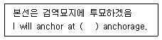 다음의 문장을 표준 해사영어로 번역하였을 때 괄호 안에 들어갈 가장 적당한 단어는?