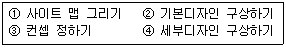 다음 중 웹사이트 디자인 프로세스의 순서를 옳게 나열한 것은?