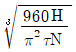 회전속도 N[rpm]으로 동력 H[W]를 전달할 수 있는 축의 최소 지름[m]은? (단, 축 재료의 허용 전단응력은 τ[N/m2]이며, 축은 비틀림 모멘트만 받는다)