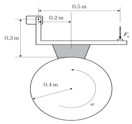 그림과 같은 짧은 슈(shoe) 원통 브레이크에서 마찰계수가 0.5, 원통의 반지름은 0.4m, 작동력 Fa=250N일 때 브레이크의 제동토크 [Nㆍm]는?