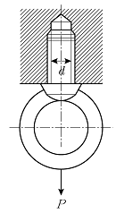 그림과 같이 아이볼트(eye bolt)에 축방향 하중(P) 2kN이 작용할 때, 하중을 지지하기 위한 아이볼트의 최소 골지름(d)[mm]은? (단, 아이볼트의 허용인장응력은 80N/mm2이며, 아이볼트는 골지름 단면에서 파괴된다고 가정한다)