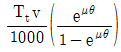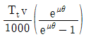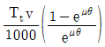 평벨트 전동장치에서 벨트 속도 v[m/s], 긴장측 장력 Tt[N], 마찰계수 μ, 벨트 접촉각 θ[rad]가 주어졌을 때, 최대 전달동력[kW]은? (단, 벨트의 원심력은 무시한다)