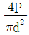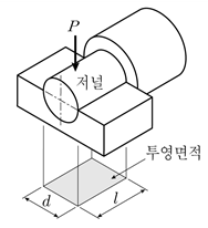 그림과 같은 레이디얼 저널(radial journal)의 베어링 압력을 구하는 식은? (단, P는 하중, d는 저널의 지름, l은 저널의 길이이고, 저널에서 압력분포가 일정하다)