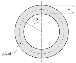접촉면 평균지름(Dm)이 200mm, 면압이 0.2 N/mm2인 단판 마찰클러치가 80πN⋅m의 토크를 전달하기 위해 필요한 접촉면의 최소 폭(b)[mm]은? (단, 접촉면의 마찰계수는 μ=0.2이고, 축방향 힘은 균일 압력조건, 토크는 균일 마모조건으로 한다)