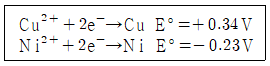 다음은 표준 수소전극과 짝지어 얻은 반쪽반응 표준환원 전위값이다. 이들 반쪽 전지를 짝지었을 때 얻어지는 전지의 표준 전위차 E°는?
