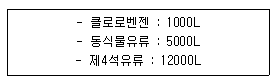 다음과 같이 위험물을 저장할 경우 각각의 지정수량 배수의 총합은 얼마인가?