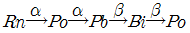 Rn 은 α선 및 β선을 2번씩 방출하고 다음과 같이 변했다. 마지막 Po 의 원자번호는 얼마인가?(단, Rn 의 원자번호는 86, 원자량은 222이다.)