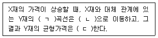 ( )에 들어갈 내용으로 옳은 것은? (단, 두 재화의 수요곡선은 우하향하고 공급 곡선은 우상향한다.)